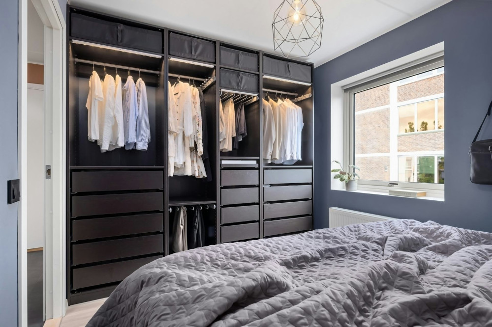 - Bruk justerbare stenger og hyller, slik at garderoben kan tilpasses når behovene endrer seg.